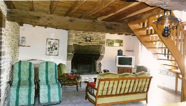 dans les vieux murs de pierre et un niveau plus bas que le séjour.